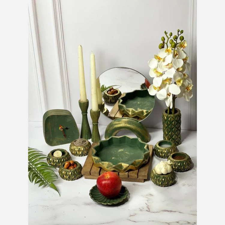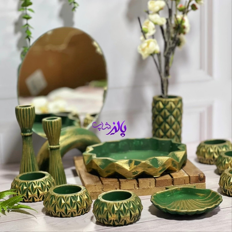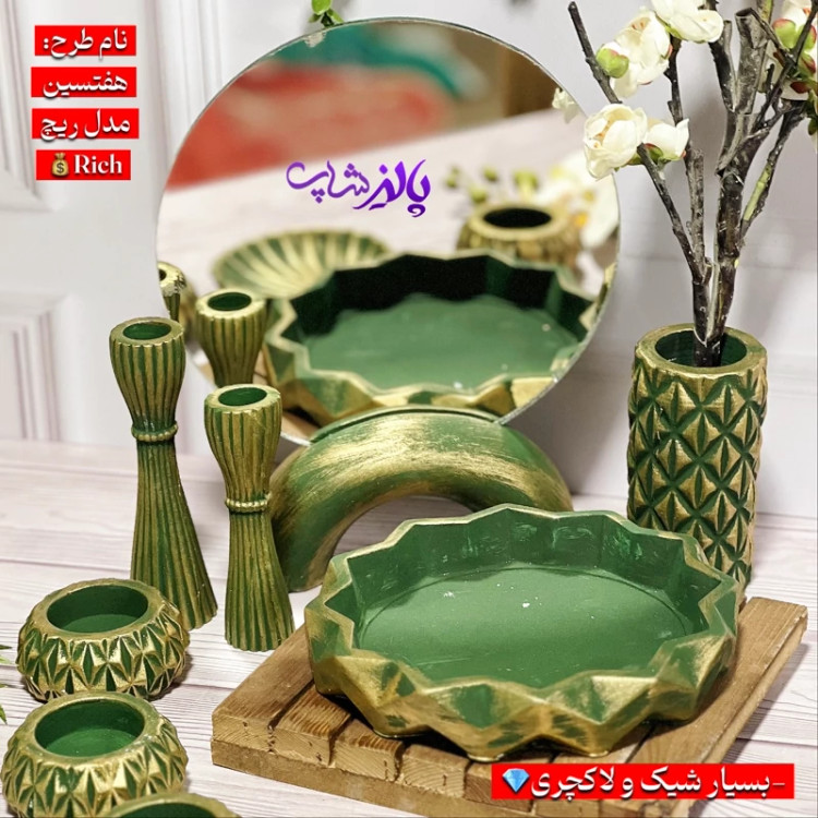 هفت سین 14تیکه طرح ریچ Rich💰 1.آینه 2.پایه آینه حلالی 3.شمعدان شیار دار 2عددی 4.گلدان 5.ظرف سبزه چند وجهی 6..کاسه (جایگاه سیب) طرح صدف 7.کاسه برجسته 6عدد مناسب سین ها(سیر، سکه، سماق و...) 14.ساعت 500هزار تومنی(هدیه از طرف خونمون) برای شمایی که به ما اعتماد میکنید🎁😍 ⛔هزینه بسته بندی رایگان هزینه ارسال پسکرایه