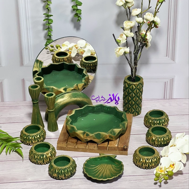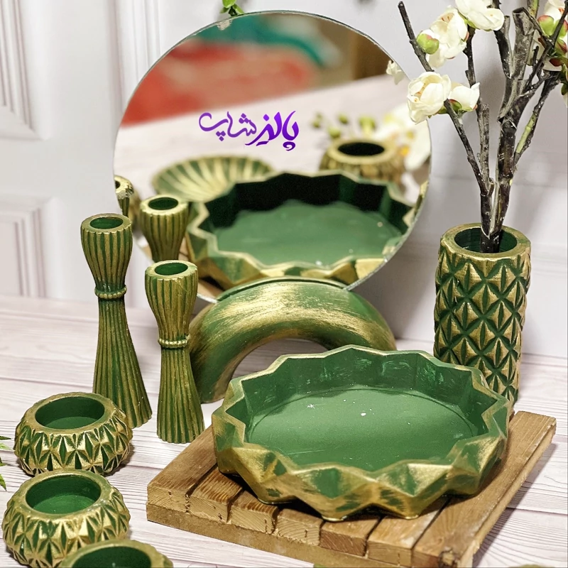 هفت سین 14تیکه طرح ریچ Rich💰 1.آینه 2.پایه آینه حلالی 3.شمعدان شیار دار 2عددی 4.گلدان 5.ظرف سبزه چند وجهی 6..کاسه (جایگاه سیب) طرح صدف 7.کاسه برجسته 6عدد مناسب سین ها(سیر، سکه، سماق و...) 14.ساعت 500هزار تومنی(هدیه از طرف خونمون) برای شمایی که به ما اعتماد میکنید🎁😍 ⛔هزینه بسته بندی رایگان هزینه ارسال پسکرایه