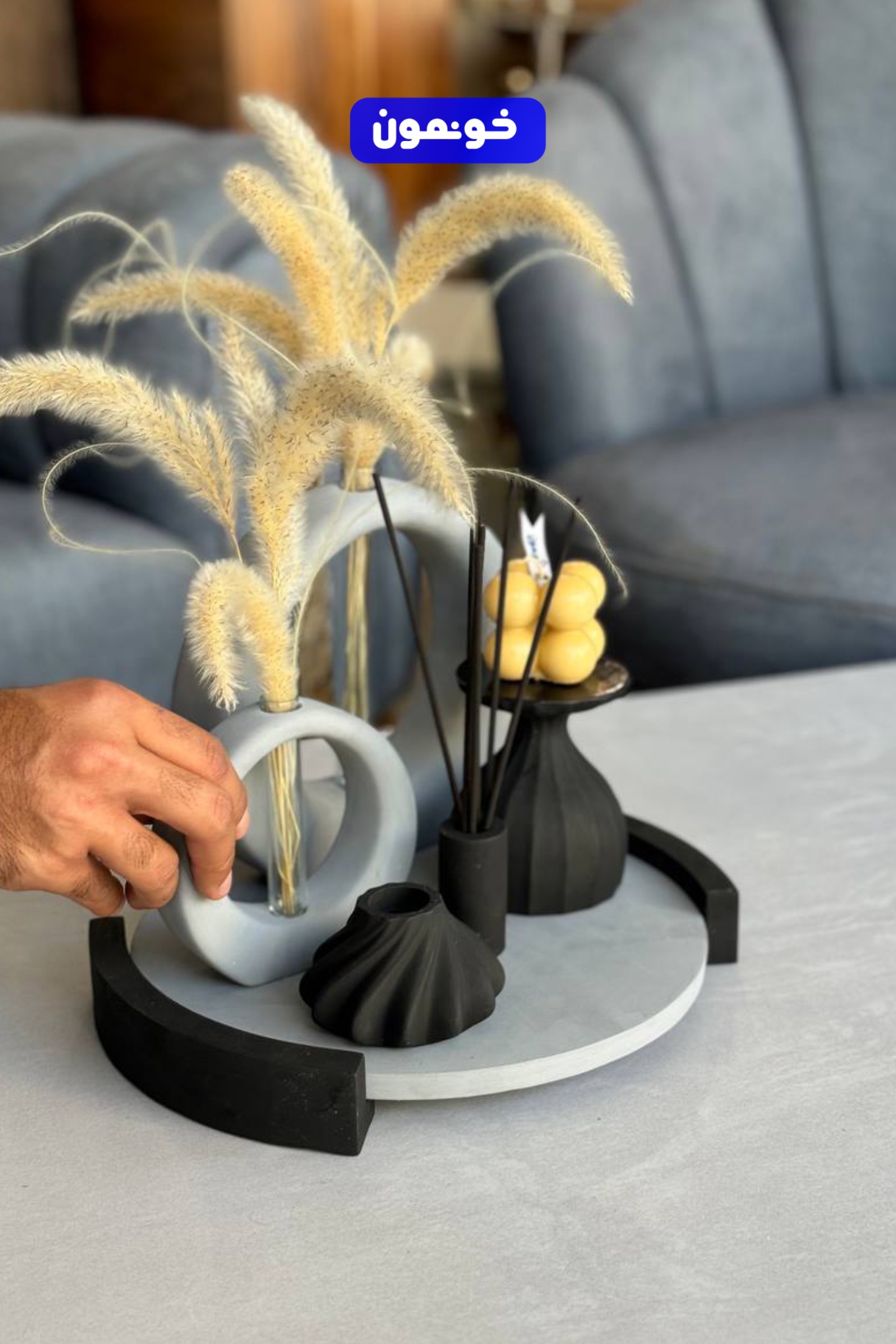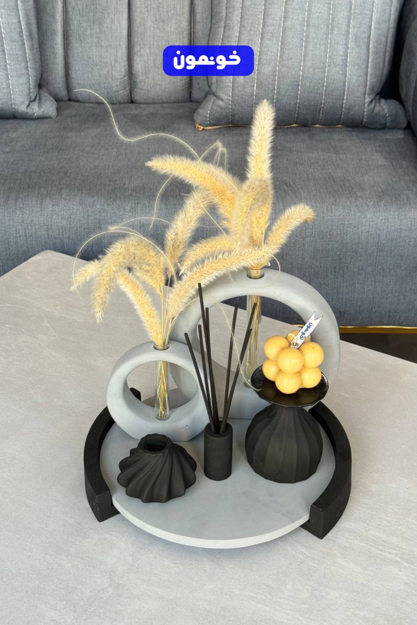 «ست دکوری طوسی–مشکی ساده، شیک و همیشه رو مُده. راحت با دکور مدرن ست میشه و یه حس خاص و مرتب به خونه میده.»